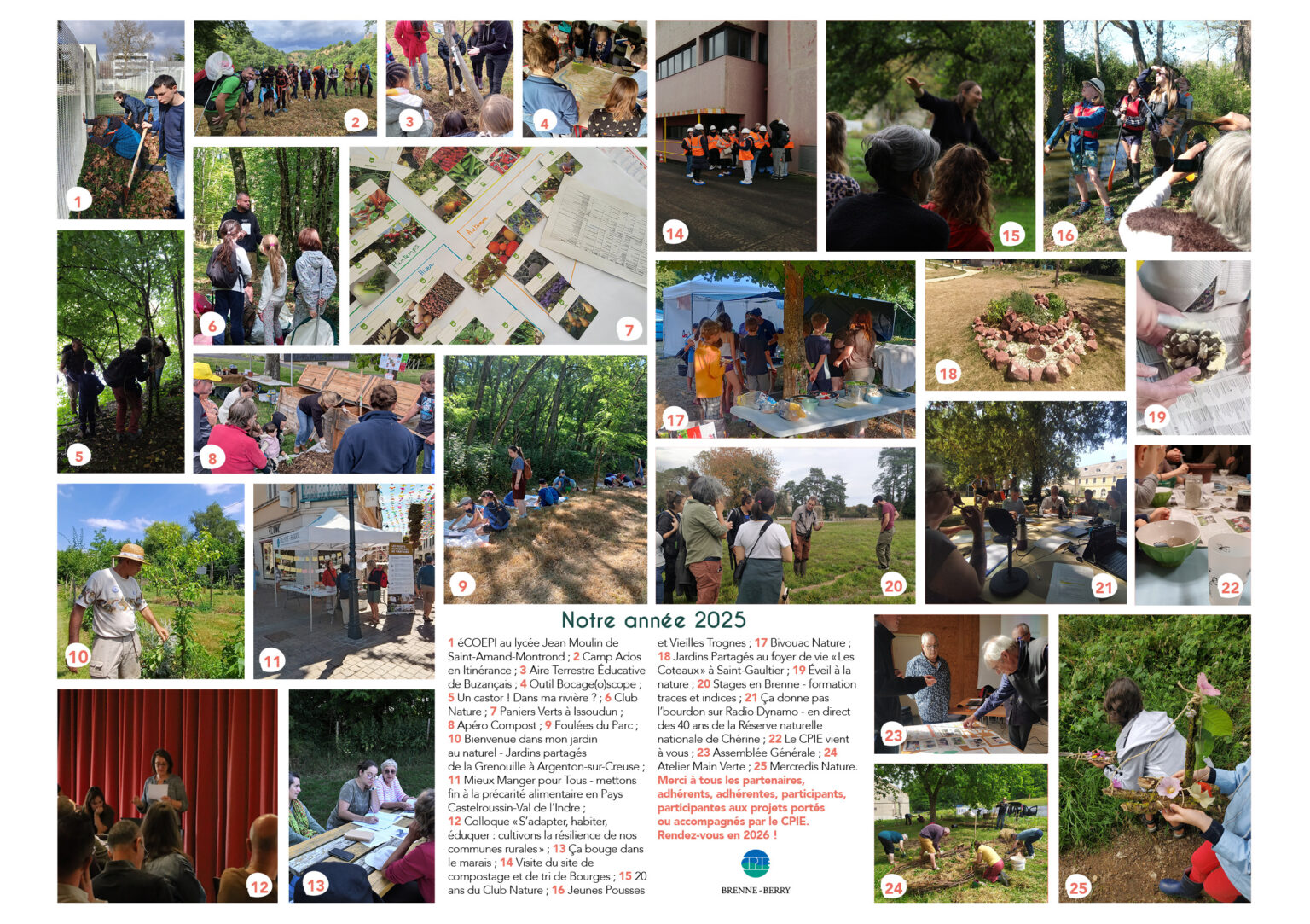 Le CPIE Brenne-Berry ne peut mener ses projets à bien que grâce à vous, bénévoles et adhérents. Nous vous remercions donc de votre engagement. Et pour vous donner une petite idée de la couleur de cette nouvelle année, vous trouverez notre nouveau programme des rendez-vous et sorties, pour la plupart gratuits pour les adhérents… Bonne découverte !